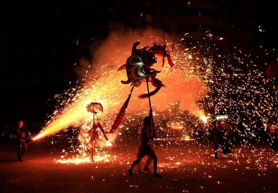 2、过苗年最热闹的是赶年场,整个正月,男女老幼,凡有银器首饰、新奇服装,全穿出,互相邀约,结群结队而行。集市上有很多舞狮子玩龙灯、击鼓跳舞、拳术刀枪、打秋千对山歌活动。更有春情荡漾的青年男女,偷偷走到集市边对歌交流,以讨糖讨菜为借口进行恋爱试探,称之为赶“边边场”。活动主要地点:凤凰县、花垣县、吉首市